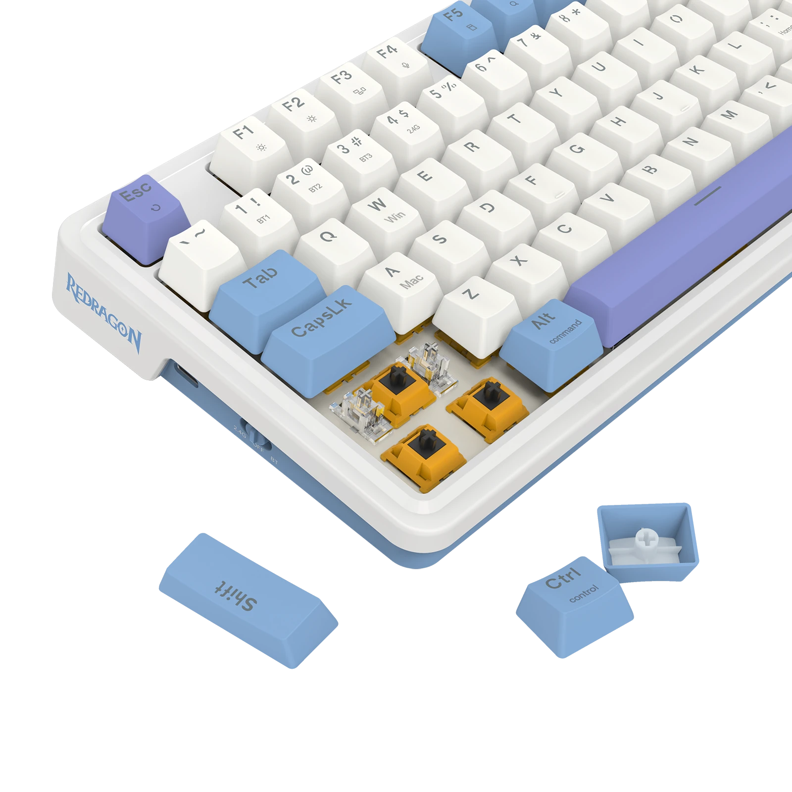 - Zawartość opakowania 1 x klawiatura Redragon K664WBP-RGB-PRO Gloria Pro 1 x kabel USB-A/USB-C o długości 150 cm 1 x instrukcja 1 x opakowanie przełączników (4 szt.) 1 x narzędzie do wyjmowania przełączników 1 x etykieta Redragon