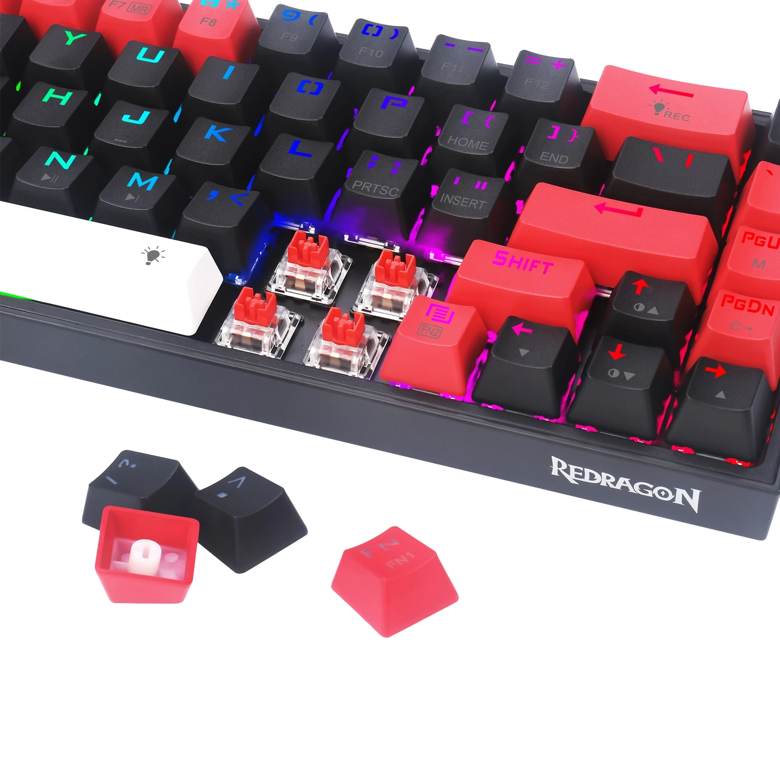 - Zawartość opakowania 1x Klawiatura K631RGB-PRO-BRW Castor 1 x kabel typu C 1 x Instrukcja 1 x opakowanie przełączników (4 szt. czerwonych przełączników) 1 x urządzenie do wyjmowania przełączników i klawiszy 1 x etykieta Redragon