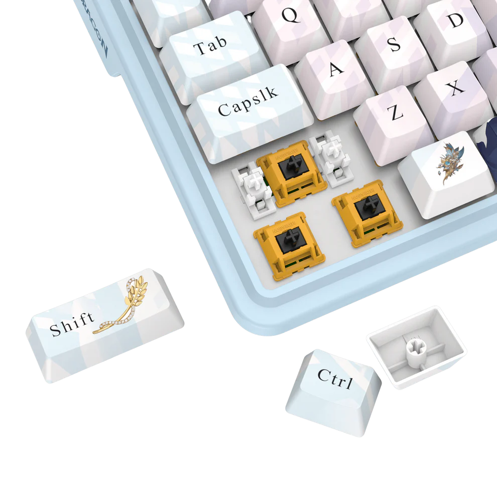 K728AK-RGB-PRO to mechaniczna klawiatura TKL (Tenkeyless) z 87 klawiszami, stworzona z myślą o użytkownikach, którzy chcą połączyć komfort pisania, gamingową precyzję i wyjątkowy styl. Niebiesko-biała obudowa nadaje jej świeżości, a nakładki PBT (Polybutylene Terephthalate) dye-sub gwarantują trwałość i odporność na ścieranie. Konstrukcja typu gasket mount wspierana pięcioma warstwami wygłuszenia zapewnia miękki, sprężysty skok i cichszą pracę, a przełączniki Lion L odpowiadają za szybkie, liniowe działanie. Funkcja hot-swap pozwala w prosty sposób wymieniać switche, bez konieczności lutowania. Całość uzupełnia podświetlenie RGB (Red Green Blue) z wieloma trybami oraz potrójna łączność, która daje pełną swobodę korzystania z klawiatury w różnych warunkach.
