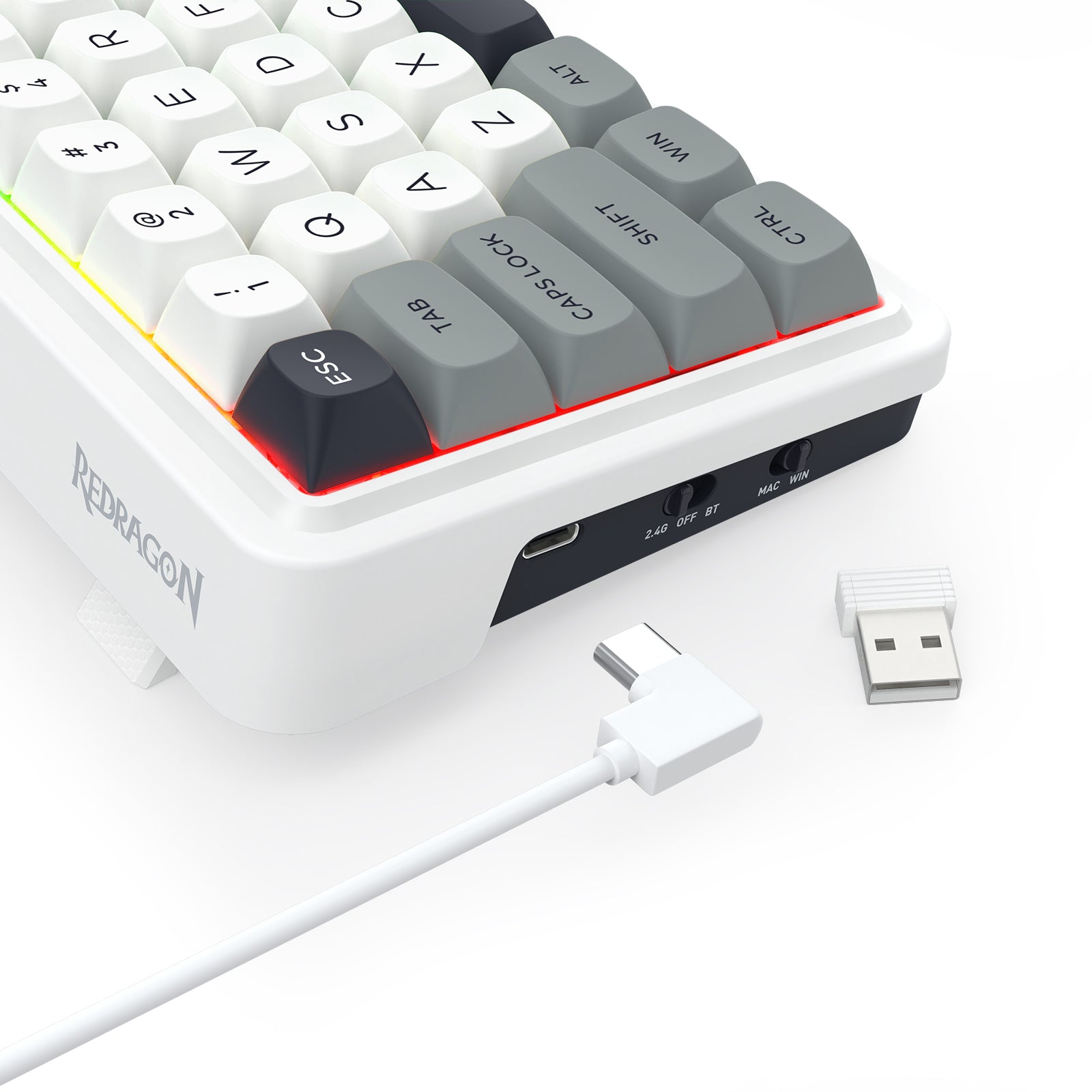 Draconic V2 obsługuje trzy tryby łączności: Bluetooth, 2.4 GHz oraz USB-C, co pozwala na płynne przełączanie się między urządzeniami. To idealne rozwiązanie dla osób korzystających z klawiatury w różnych środowiskach – od PC po smartfony i tablety. Dzięki kompaktowemu układowi 61 klawiszy zajmuje niewiele miejsca na biurku, zachowując przy tym pełną funkcjonalność. Lekka i przenośna konstrukcja sprawia, że klawiatura sprawdzi się zarówno w domowym setupie, jak i w podróży.