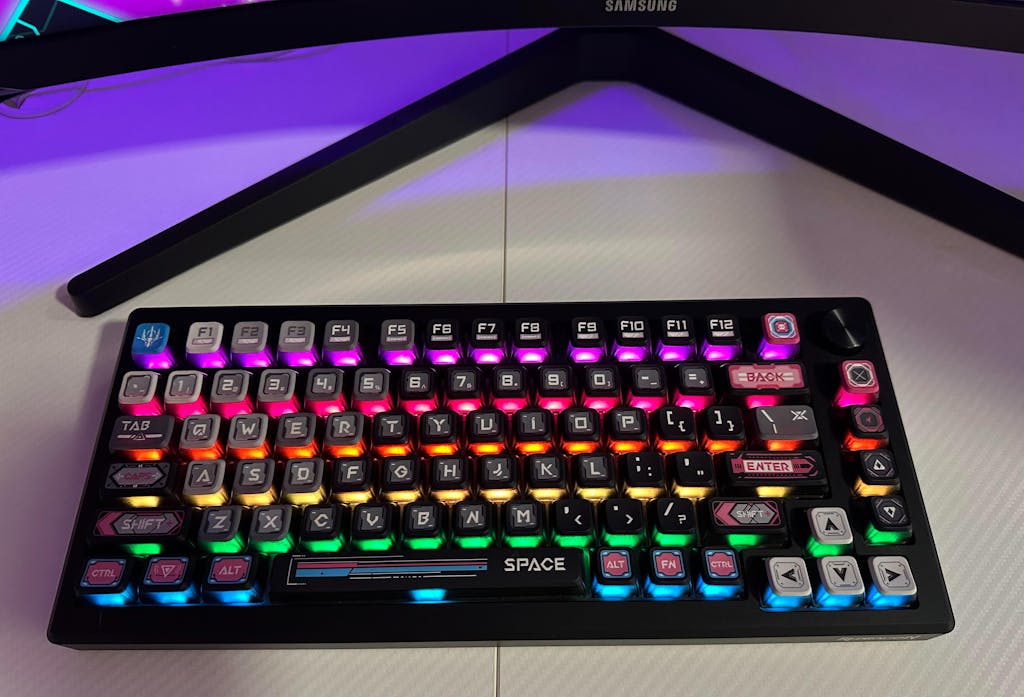 Wejdź w świat neonowego blasku i futurystycznej technologii z Uranus PRO K732MC-RGB-PRO – mechaniczną klawiaturą zaprojektowaną dla tych, którzy cenią sobie niezawodność, precyzję i efektowny cyberpunkowy styl. Solidna aluminiowa konstrukcja wycinana w technologii CNC, odporne na ścieranie nasadki PBT oraz autorskie, fabrycznie smarowane przełączniki WuKong gwarantują płynność działania i błyskawiczną reakcję. Klawiatura łączy trzy tryby łączności – przewodowy, 2.4G i Bluetooth, pozwalając Ci na pełną swobodę użytkowania. Dopełnieniem całości są dynamiczne efekty świetlne oraz pokrętło sterujące, które daje pełną kontrolę nad dźwiękiem i podświetleniem.